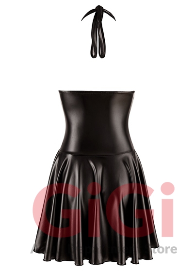 Do you love being the centre of attention? All eyes will definitely be on you when you wear this black wetlook dress! The transparent powernet in the chest area allows your partner cheeky glimpses of your beautiful breasts – a sight they won't be able to resist. The two black vinyl stripes on each bit of powernet emphasise your breasts even more. The two pieces of powernet can be tied together and become a halterneck. You can tie it so that the halterneck fits perfectly. However, the skirt is also hot because it is slightly flared and swishes every time you move. The skirt is shorter at the front than at the back, which gives you even more sex appeal. The full-length, 2-way zip means that you can take this dress off as quick as a flash when the situation arises – your partner will definitely love that!