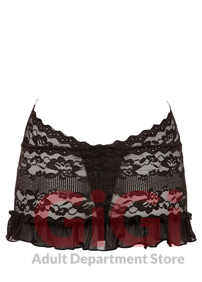 - Includes a sewn-on crotchless string