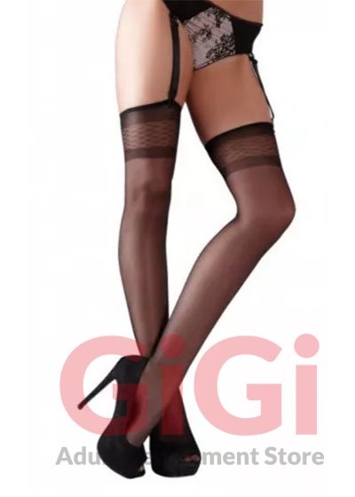 Black stockings with fine edgings. Oeko-Tex standard certified.