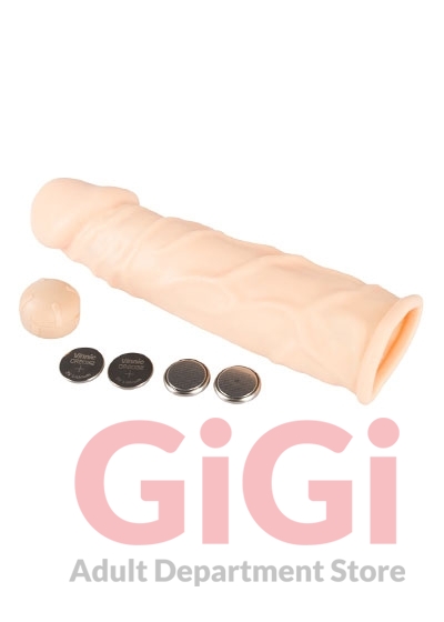 Penis sleeve made out of super soft material with multi-speed vibrations. Extends the penis by 2.6 cm and stimulates the partner and the user's penis with sensual vibrations. With bulging glans and pronounced veins – silky smooth on the inside. The sleeve is very flexible and stretchy. Batteries are included (2x2 CR2032).