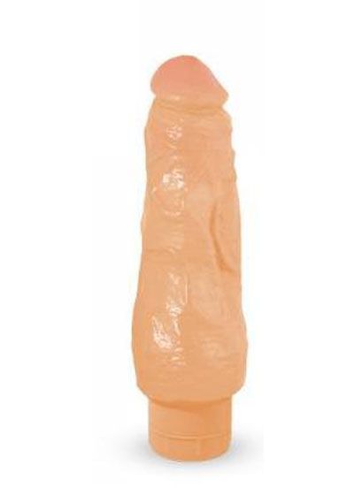 Blush Novelties B Yours Vibe #9 is a 7 inch realistic vibrator with a fat shaft. Twist dial base is waterproof for shower and bath time. Created for the cost conscious, Vibe #9 is made of phthalate free PVC. To clean use soap and water or a toy cleaner then let air dry. Dimensions Length 7 inches, insertable length 6.25 inches, width 2.25 inches. Requires 2 AA batteries, not included.