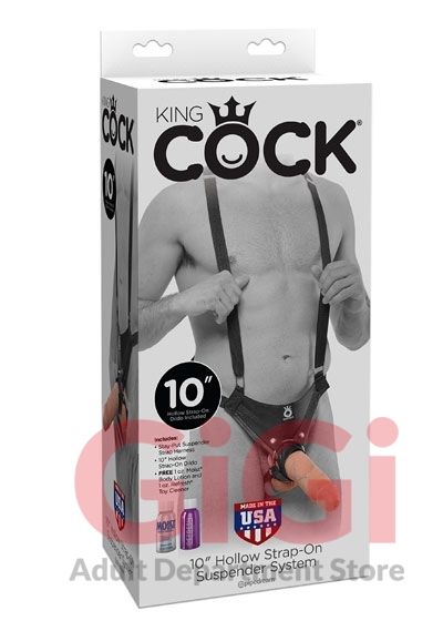 King Cock 10 Inch Hollow Strap On Suspender System