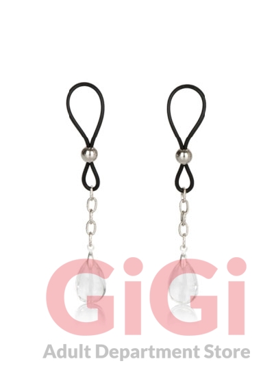 Includes 2 fully adjustable nipple adornments. Soft and comfortable cinch design. Non-piercing, non-tarnishing, nickel free body jewelry. Safe and pure for body and pleasure made using phthalate free materials Nickel free iron chain, beads. Silicone loops. Crystal jewels. 2.25 inches each loop.4.5 inches overall length. Bulk weight 0.5 ounce.