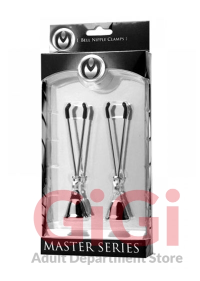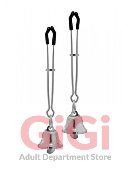 Audio erotica is in play when these devious little bells are ringing. Your plaything will look and sound tantalizing when these clamps are placed just so. These tweezer style nipple clamps have a bell attached at each end that makes a low pitched ringing sound when in motion. The vinyl coated ends provide comfort and grip while the sliding ring allows for varying amounts of pressure. Ideal for beginners and clamp aficionados alike. Measurements: 4 inches in height, opens to a maximum width of 0.5 inches. Material: Metal, vinyl. Color: Silver