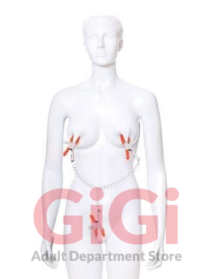 Sexy nipple and clitoral clamps are equipped with robust stainless steel chain.