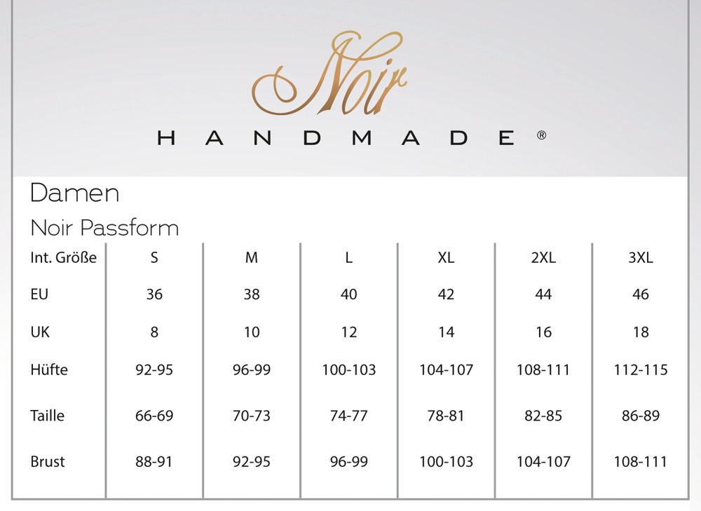 IMPORTANT: there is a separate size chart for NOIR!