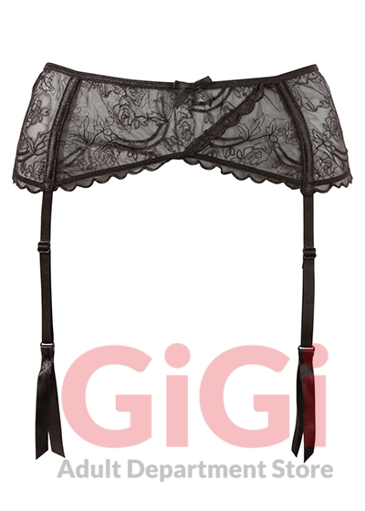 Suspender belt with four adjustable straps and a hook-and-eye closure. 100% polyester.