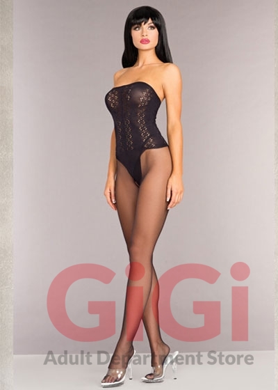 Opaque Strapless Body-stocking. Black. Box packaging.