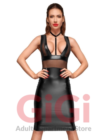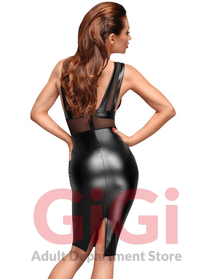 Very stretchy (power) wetlook in a shiny matte black look. Knee-length