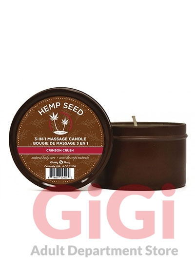 Our 3-in-1 massage candles melt down into a massage oil with a unique blend of six natural oils providing a professional slip that moisturizes skin, leaving it appear more healthy and hydrated with a youthful looking glow. Experience this liquid gold by pouring it directly onto the body for a warm massage, or in place of your daily moisturizer! Benefits Hemp seed oil has high levels of Omega 3 and 6 Essential Fatty Acids which nourish and protect the skin. Jojoba seed oil absorbs into the skin and delivers hydration and long-lasting moisture. Soybean oil is a great source of antioxidants and helps keep skin healthy and youthful looking. Avocado oil triggers the production of collagen in the skin which helps it stay smooth and rejuvenated. It easily absorbs into the skin and is an excellent moisturizer. Apricot kernel oil is good for soothing dry, parched skin. It absorbs quickly and provides moisture for long periods of time. Coconut oil smooths and moisturizes skin all day, leaving it feeling silky soft. Crimson Crush smells like peppered cranberry and star anise.