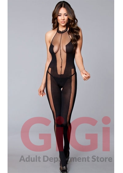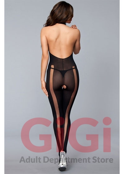 Halter neck crotchless bodystocking with cut out details. 92% Nylon 8% Spandex.