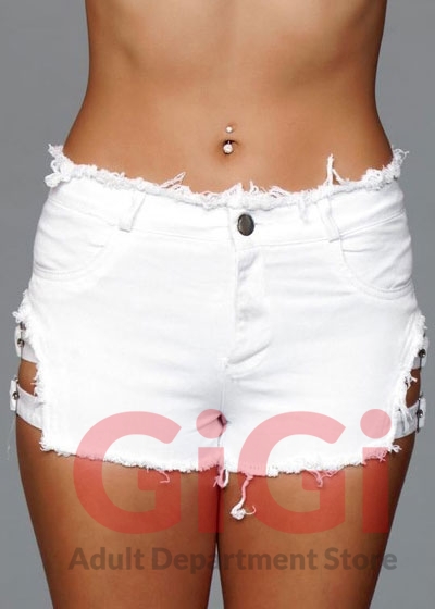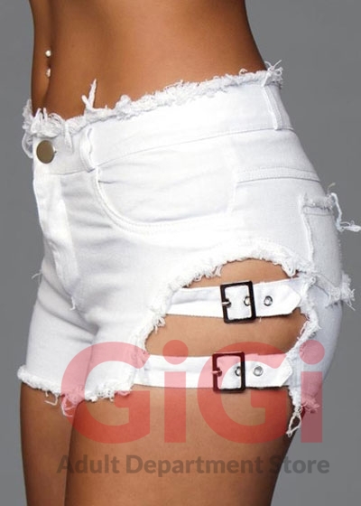 Denim Shorts With Belt Buckle White