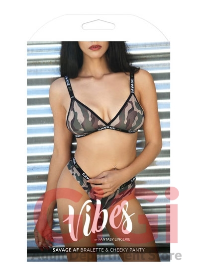 Camo Mesh Bralette with "Savage AF" Adjustable Elastic Straps and Matching Cheeky Panty