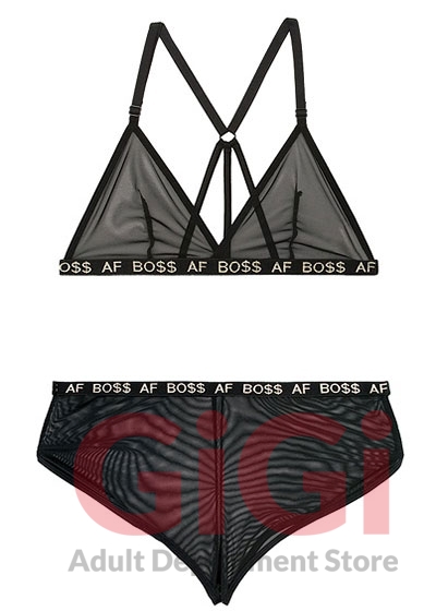 Mesh Bralette with "Boss AF" Straps and Matching Retro Short