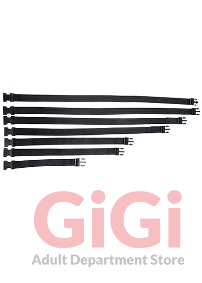 Restrain your partner with seven body straps in varying lengths. Each one adjusts to tighten around your lovers prone body, allowing you to customize their captivity. The easy-to-use buckles create a convenient bondage as your plaything is wrapped from shoulders to ankles, effectively immobilizing them so that they are entirely at your mercy!
