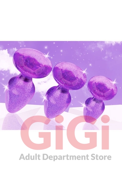 This set of smooth, solid butt plugs features a shiny glittery purple pattern to decorate your booty while you play! These Glitter Gem plugs are tapered and slim, and graduate in size from small to large for easy training - perfect for beginners and experts alike!