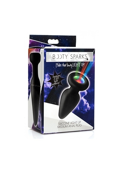 Light up the night with this light-up anal plug! Have some fun with your booty play and give your partner a light-show at the same time. This silicone anal plug has an LED light that shines red, green and blue and switches between 3 different light patterns! Find your partner in the dark or play some music that matches the pulsing beat of the LED light-show!