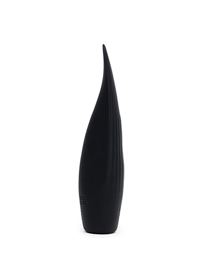 - Smooth, black silicone tongue vibrator with flickering tip for targeted arousal