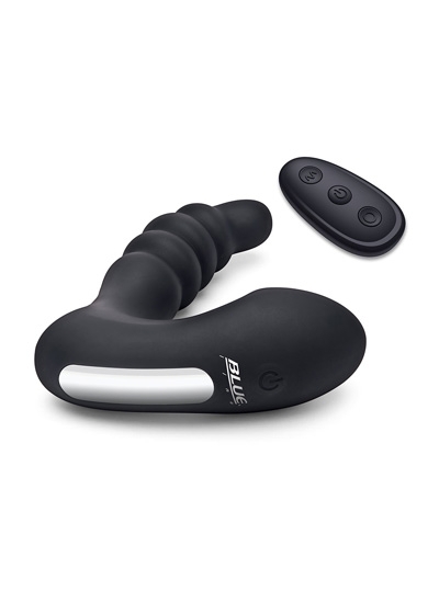 Take a multi-sensory romp in the rump with the Prodder Prostate Massager from Blue Line. Provide simultaneous stimulation to your prostate and perianal area with independent motors to give your pleasure zones individual attention, or take your body on a tantalizing trip of forceful orgasms with dual motor power. Pummel your hole with a 4.5 ribbed shaft made of 100% body-safe silicone to give your sphincter a stretching while quaking your prostate. Independently controlled tip and base vibrations, send your body into euphoria at your own speed with 3 vibration intensities and 4 vibration patterns. With remote control capabilities, take the driver seat hands-free or give control to your partner for a kinky session of sexploration. The 100% silicone body and magnetic charge port make the Prodder safe to use with any water-based lube and super easy to clean with soap and water so you only need to worry about your pleasure.