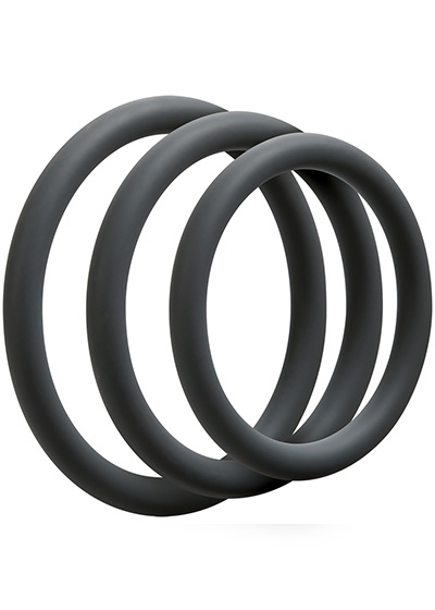 Optimize your experience with these silicone cock rings from Doc Johnson! The OptiMALE Thick C-Ring Set offers enhanced size and girth with three rings in 40mm, 45mm, and 50mm diameters. These rings are ultra-stretchable for easy use around the shaft or testicles, maintaining those long-lasting erections you've always dreamed of, and prolonging your ejaculation. Phthalate-free silicone.