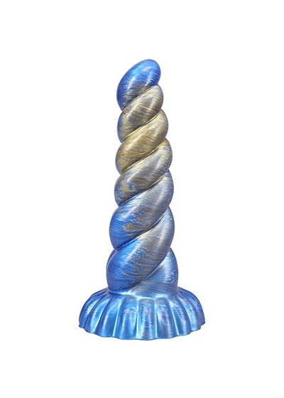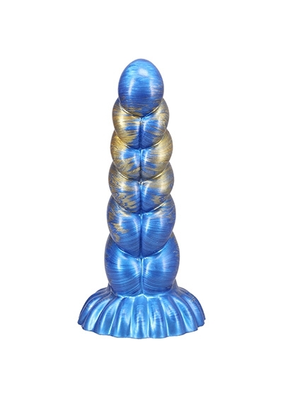 Embark on a erotic journey of pleasure with the Outer Rim, a silicone delight that will take you into the next galaxy of pleasure. This captivating toy features a perfectly rounded insertion point, with thriling ridges, inviting you to explore new depths of ecstasy. The vertical shaft teases with every movement, offering a rhythmic sensation that enchants and enthralls. Swirling in vibrant blues marbled with shimmering gold, the Outer Rim is a visual feast as mesmerizing as its touch. Surrender to the surreal, seductive magic of this fantastical creation and let your desires wander through a the Outer Rim of bliss.