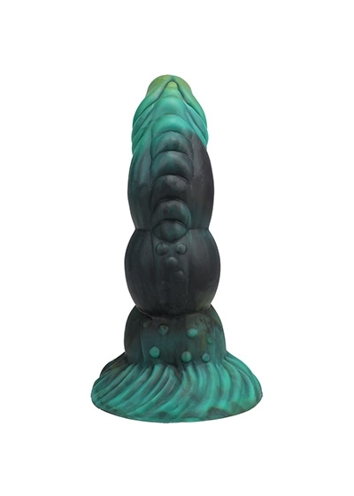 Dive into the depths of desire with the Green Serpent, a silicone marvel that channels the primal allure of the deep. Its spine, textured like the rugged scales of a sturgeon, delivers a thrilling, tactile edge, while the smooth, soft underside caresses with every glide. The insertion point, sculpted to echo the hauntingly iconic head and ripples of the Creature from the Black Lagoon, beckons you into uncharted pleasures. Transitioning into large, rounded segments, this toy offers a rhythmic, fulfilling intensity that captivates. Drenched in a striking palette of black and deepwater greens, the Green Serpent is a seductive siren of the abyss, ready to lure you into waves of ecstasy.
