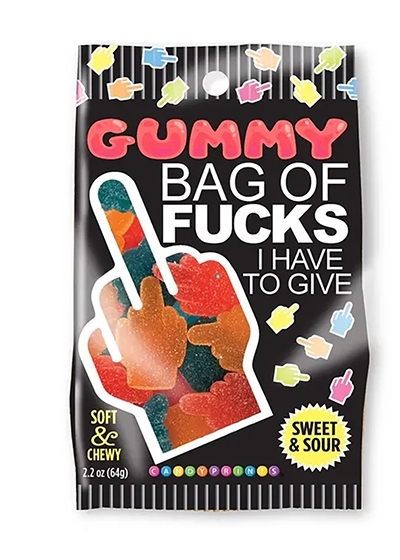 Each 2.2oz pack is filled with fruit-flavored gummy middle fingers — the tastiest way to say "I don’t care" without having to waste your breath.