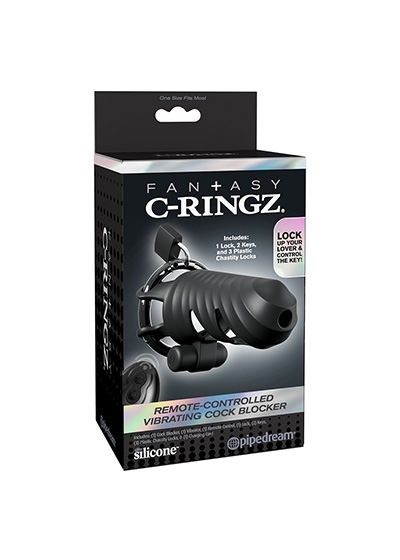 This is no ordinary cock blocker... It sports a powerful remote-controlled, rechargeable 10-function vibrator that can be used as the ultimate tease for your partner!