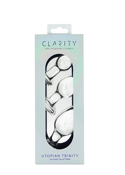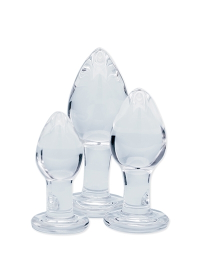 The Utopian Trinity is a three-piece glass butt plug set that offers a refined journey of progression, from beginner to advanced play.