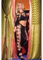 Be-Wicked! Long Sleeve Shredded Half Top and Footless Tights OS