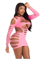 Opaque Shredded Cut Out Mini Dress - One Size - Neon Pink\Black\Green