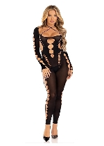 Seamless Dotted Net Crotchless Lingerie Jumpsuit - Lingerie Jumpsuit With Heart Detail - Os - Black