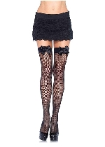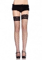 Lace Top Fence Net Thigh Highs - One Size - Black
