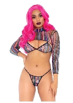 3 Pc Fishnet Bikini G-String and Crop Top