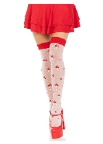 Nylon Over the Knee Socks - White With Red Bow