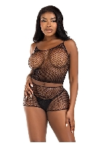 2 Pc Net Tank Top With Boy Shorts-Black\Pink\Lime